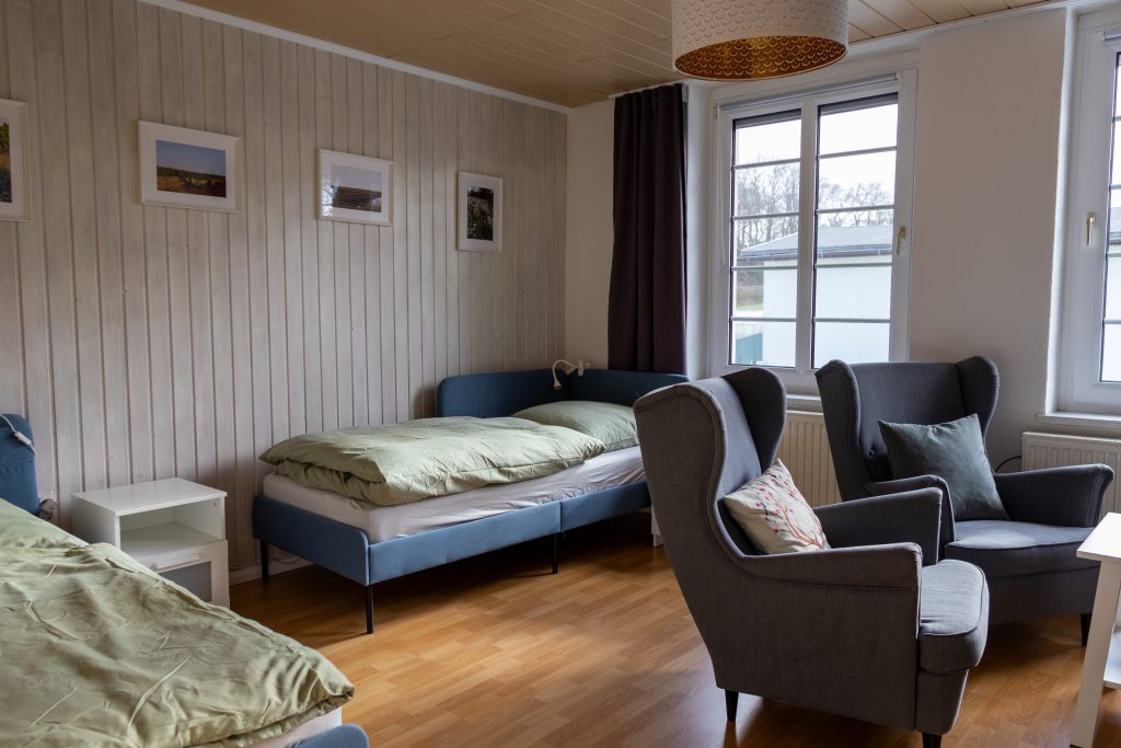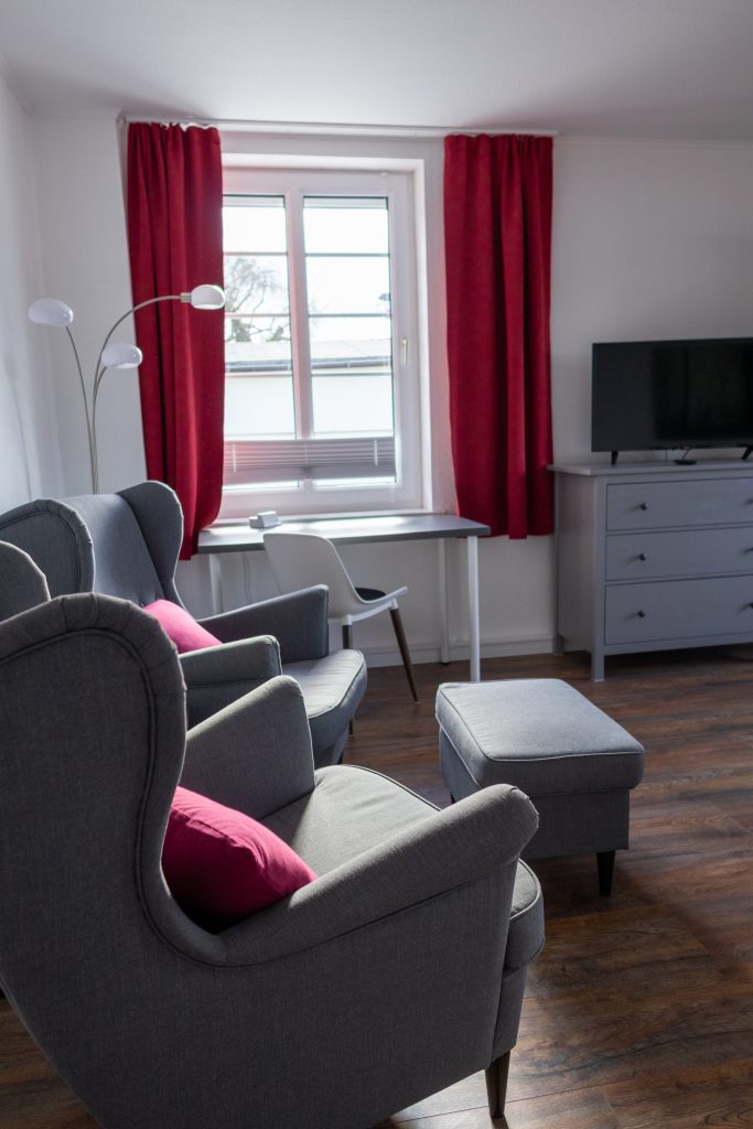 Wir bieten drei gemütliche und helle Zimmer (Zweibettzimmer, Doppelzimmer und Einzelzimmer), die auch einzeln gebucht werden können. Jedes Zimmer verfügt über einen Fernseher, einen bequemen Sessel, Tisch, Schrank und Kommode.