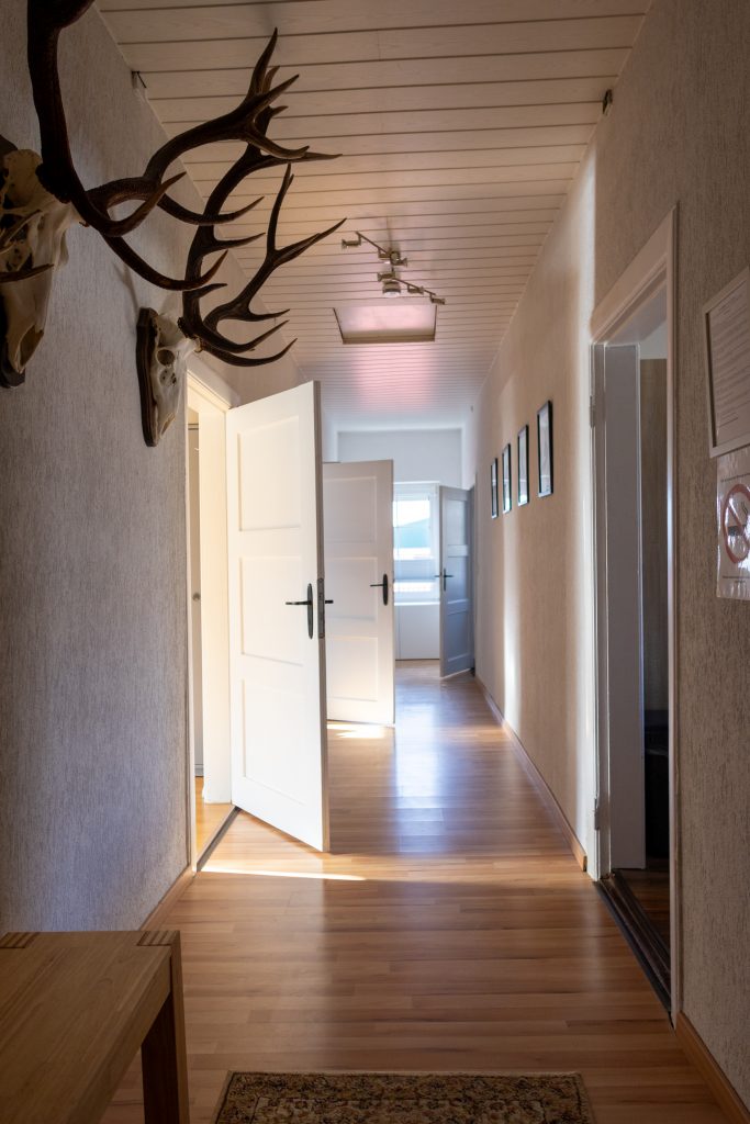 Unsere großzügige Ferienwohnung befindet sich im Obergeschoss eines Mehrfamilienhauses, das seit vielen Jahrzehnten in Familienbesitz ist. Der separate Eingang sorgt für Ruhe und Privatsphäre. Direkt am Haus stehen Ihnen praktische Parkmöglichkeiten zur Verfügung.